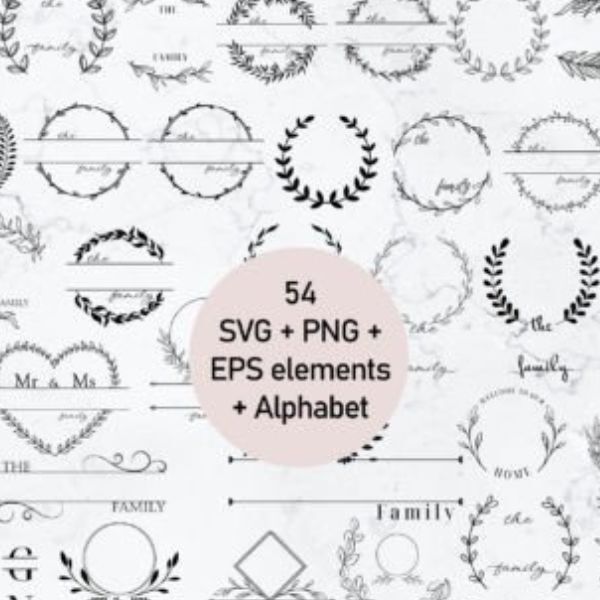 – 54 frame monogram svg files + alphabet ;