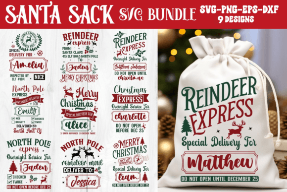 Santa Sack svg Bundle, Christmas SVG Bundle, Santa Sack SVG, Santa Sack Bundle, Christmas Santa Bag SVG, Christmas Express SVG, North Pole SVG, Santa Mail Christmas Sack bundle